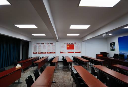由于办公用房紧张,我处党委坚持“一室多能、综合利用”的原则,按照“布置整洁,内容丰富,氛围浓厚,特色鲜明”的要求,将园内的大会议室进行局部改造,科学合理开展“两室”空间建设,既是会议室又是党员活动室。活动室门口悬挂有“党员活动室”标牌,室内做到“党旗”、“入党誓词”“党员权利”“党的基本路线”“党员义务”“党的指导思想”“三会一课制度”“民主评议党员”“组织生活会制度”“党员教育管理制度”“党风廉政建设责任制度”上墙,时刻提醒广大党员“不忘初心、牢记使命”。活动室另配备电视、移动屏幕、会议桌椅等设备,充分保障党建教育培训需求。