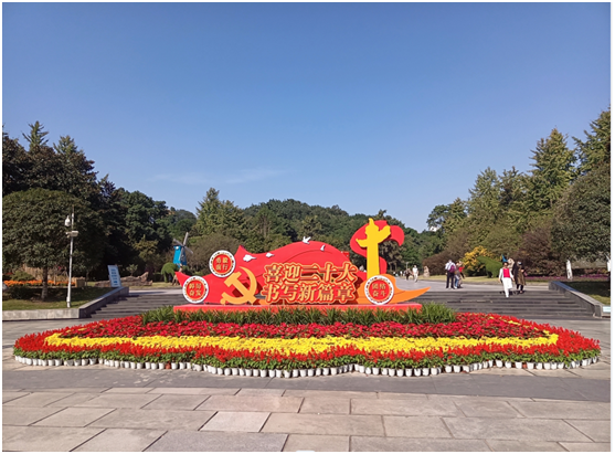 新、老大门LED屏上滚动播放的喜迎二十大的宣传标语,引得路人驻足围观,那一句句振奋人心的话语,抒发着大家对祖国的热爱和祝福。园内宣传栏的那几抹鲜红,也吸引着大家的眼球,鼓舞着广大群众自信自强,勇毅前行。更让人注目的是“喜迎二十大,书写新篇章”的立体花堆,分外夺目,成为我园的一道靓丽的风景线,不少往来游客停留观赏。
