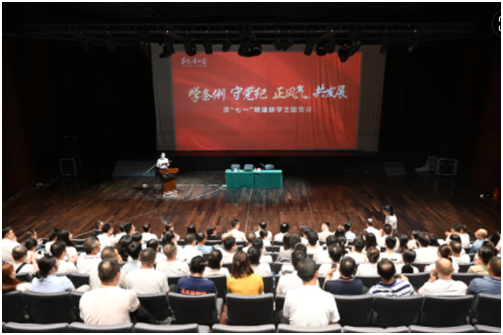 为庆祝共产党成立103周年,进一步学习贯彻习近平总书记“7.9”重要讲话精神,加强党员干部的思想政治教育,推动党纪学习教育走深走实。2024年7月9日下午,市动物园与重庆万象城、市大剧院、工商银行、光大银行、华润万家OLE联合开展“学条例 守党纪 正风气 共发展”主题党日活动,共计128名党员参加。