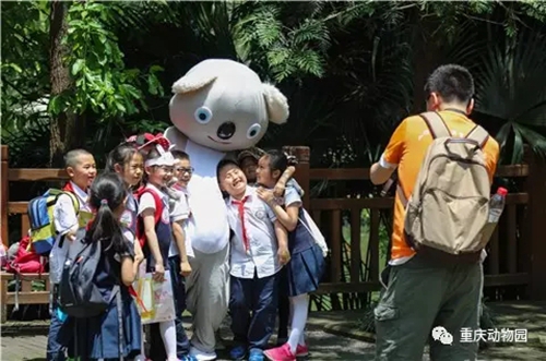 由科普教员穿上动物玩偶服装,扮演野生动物朋友,与孩子们合影。旨在唤起孩子们爱护动物、亲近动物的意识。