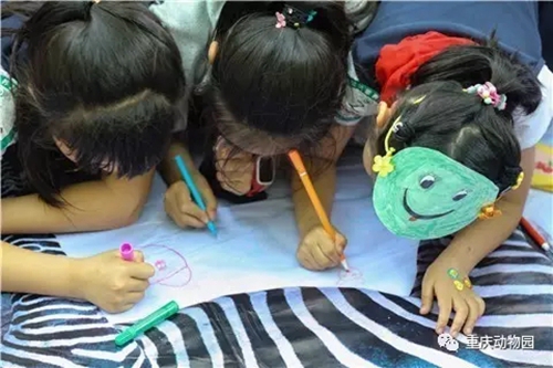 “热爱自然保护动物”涂鸦,让孩子们发挥自己的想象,在喷绘上进行涂鸦,画出心中喜爱的动物。同时,发起野生动物保护倡议,重申生命教育的意义与内涵。