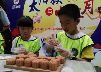 节尾狐猴又称“太阳猴”,作为我园新进成员在全国科普日及中秋双节期间与市民见面。22日上午,我园组织开展了“太阳猴与中秋月”主题活动,12组亲子家庭来到节尾狐猴馆,与狐猴共度中秋佳节。活动主要从四个方面展开:一是“节尾狐猴”科普课堂。认识节尾狐猴,了解其生态栖息地、饮食结构、行为特点等知识。二是“过中秋、送祝福”花灯制作。做中秋花灯,写下美好祝愿。三是“我为狐猴做月饼”。节尾狐猴喜食苹果、香蕉、胡萝卜、南瓜、窝头、坚果等,根据其食性,参与者们分别制作了“南瓜、胡萝卜、莴笋”三种口味的月饼,并用多种水果、坚果等装盘,形成美味可口的月饼大餐。四是“邀狐猴过中秋”。进入狐猴运动场,挂花灯、送月饼,过中秋。