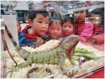 一、展览展示——项目动物、鸟蛋标本及科普知识展板展示。我园展出了十二种野生鸟类蛋壳标本及刺猬、鳄龟、中国大鲵、辐纹陆龟、赤链蛇、绿鬣蜥六种项目动物,开拓了山区学生们的眼界,为他们创造了近距离观察认识野生动物的机会。同时,图文并茂的展板从讲述我国十种本土珍稀野生动物的故事、展现重庆动物园魅力两个方面呈现,深深吸引了学生们驻足阅览。