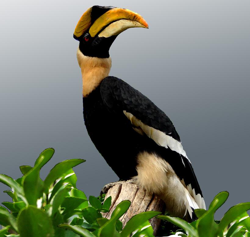 双角犀鸟:主要分布于印度、缅甸、泰国、中南半岛、马来西亚和印度尼西亚;是我国所产犀鸟中体形最大的一种,体长达120厘米左右;雄性成鸟长着一个30厘米长的大嘴和一个大而宽的盔突,像古代武士的头盔,因此得名双角犀鸟。主要以各种热带植物的果实和种子为食,也吃大的昆虫、爬行类、鼠类等动物性食物。目前动物园引进双角犀鸟3只,一雄二雌。