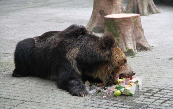 重庆主城连晴高温,63年历史同期最高温。动物园里的棕熊吃冰镇瓜果消暑。