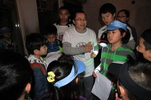 况;“游园寻宝”——在规定时间找出十二生肖动物;“建帐划营”——小朋友们自己搭建帐篷、整理物品;“鸟类讲座”——观察百鸟归巢,感受百鸟齐鸣,由鸟类专家讲解观鸟知识;“拜访动物”— —夜游两爬馆、金鱼馆,对动物的夜间行为进行观察,完成行为学观察表和观察日记,体验鳄龟喂食过程。