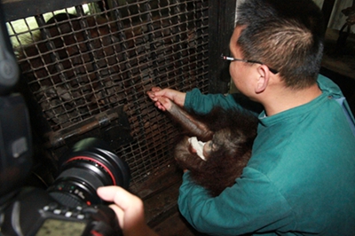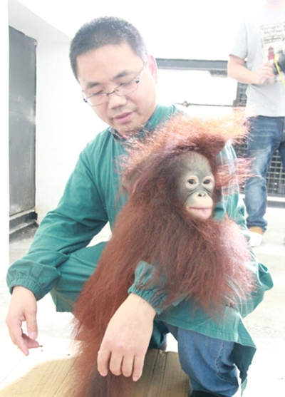 1岁零4个月的“红豆”从去年1月10日出生到现在,都在育幼室里生活。在保育员的照料下,“红豆”发育得很好,目前体重已达8.1kg。半年前,动物园着手为“红豆”修建了新房。昨天下午,工作人员提前给它洗了澡,并对新家进行了消毒。市民在“六一”期间到动物园,就可在猩猩馆看到“红豆”。