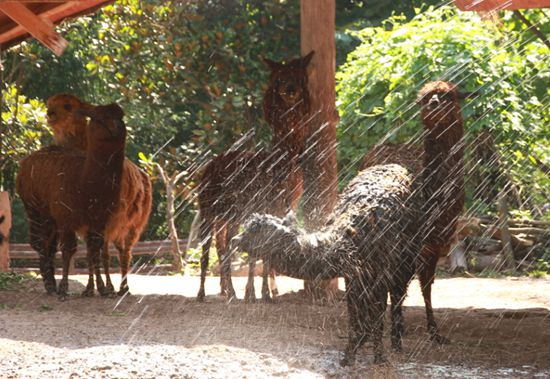 当日午间,重庆气象台发布高温橙色预警,重庆主城多区气温将超过37摄氏度。我们重庆动物园的动物怎么避暑降温;披着厚厚绒毛的羊驼成为食草动物区里最容易中暑的动物。饲养员为羊驼剪去了厚厚的毛,并在酷热时不停地用凉水给羊驼“冲澡”。