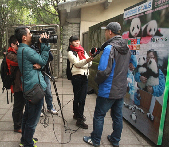 按语:我园大熊猫“娅娅”,2015年8月30日诞下他的第五个熊猫幼崽。在“娅娅”的自然哺育和工作人员的悉心照料下,雄性幼崽生长良好,体重已达9.2kg。值此新春佳节即将到来之际,熊猫幼崽将与市民游客正式见面,为隆重介绍熊猫幼崽,我园举行了大熊猫见面会暨征名活动启动仪式。与此同时,2016年1月17日,由联合国开发计划署(UNDP)、中国野生动物保护协会、四川省野生动植物保护协会、重庆市林业局、重庆市园林局、成都大熊猫繁育研究基地等近20家机构和部门支持,以及17个国家的25家动物园共同协办的“‘UNDP形象大使’全球征名暨‘UNDP熊猫使者’全球招募活动”隆重启动。重庆动物园作为西南地区最重要的分会场之一,对此次活动进行了同期媒体发布。