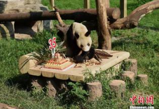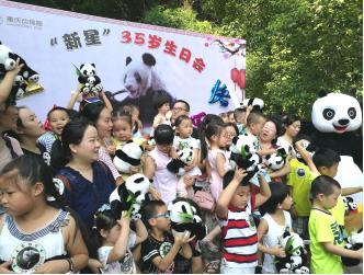 再次,“大熊猫‘新星’35岁生日会”——重庆动物园全国科普日特别活动。 16日,我处邀请各大媒体及35名大熊猫粉丝来到熊猫馆,共同庆贺“新星”35岁生日。活动当天,一是播放了“新星”后代在加拿大、美国、日本、中国香港、中国台湾以及成都、雅安、上海等20多个国家和地区共同祝愿“新星”生日的视屏资料,“新星”的子孙们,在不同的国家和地区,在同一时间,一起分享“新星”生日的喜悦,也见证了“新星”为熊猫这个珍稀物种的发展繁衍做出的卓越贡献。二是35名熊猫粉丝为寿星“新星”绘制了一幅10米长卷画,展现了“新星”的庞大家族。三是我处特别为“新星”和游客定制了生日蛋糕,一起分享“新星”生日的喜悦。