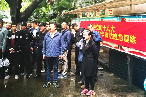 为迎接党的十九大召开,遵循“预防突发事件,熟练保护意识”的方针,切实增强我处干部、职工消防安全意识,提高应对突发火灾事件自救和逃生能力,我处于2017年10月17日在行政办公楼举行一次“喜迎党的十九大 重庆市动物园管理处消防灭火与人员应急疏散演练”。此次演练特邀重庆市城市管理委员会安全督导处、九龙坡区公安分局内保支队、九龙坡区旅游局、九龙坡区消防队、九龙坡区杨家坪派出所等相关单位领导莅临现场观看指导。我处全体行政办公人员、安全生产监督员、义消队员、班组长、技术主管和保安队伍共96人参加演练。