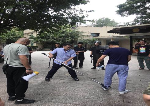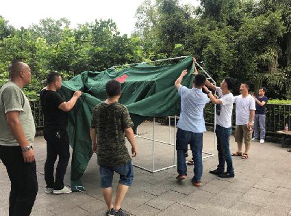 接着,殷副处长以现场抽签方式将参训人员分为反恐防暴组、应急救援组、消防灭火组,并亲自示范讲解反恐防暴器材的正确使用方式、救援帐篷的快速搭建方法及干粉灭火器材的规范操作,演练按照分组有序开展,参训人员分工明确,相互配合,一气呵成。