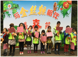 川金丝猴为我国特有珍稀一级保护野生动物。为喜迎川金丝猴落户山城,提高公众野生动物多样性保护意识,2019年1月26日,重庆动物园围绕“新住民”川金丝猴三口之家,开展了系列保护教育科普活动。活动吸引市民踊跃参与,报名前12名亲子家庭莅临活动现场,饱尝了一顿生动的科普盛宴。我园为认养者颁发了动物认养证书及科普礼品。