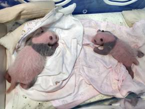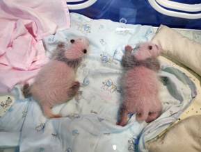 按语:6月23日,重庆动物园大熊猫“兰香”顺利产下双胞胎,两只幼仔均为雄性。当日下午,再传喜讯,大熊猫“莽仔”亦产下双胞胎,两只幼仔均为雌性。这在我园近60年的大熊猫圈养史上属首例,在全世界动物园大熊猫繁育史上也极为罕见。目前,我园对四只幼仔进行人工辅助育幼,四只幼仔均发育良好。