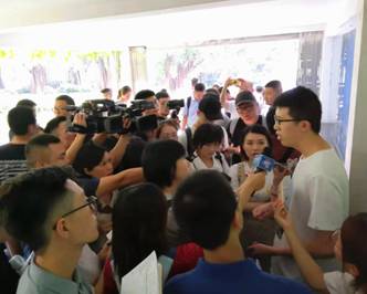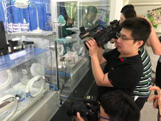 新闻发布会后,重庆动物园举行了 “四宝”媒体见面会,各大媒体记者聚集熊猫馆育幼室。在媒体记者和中外游客的热切期待中,“四宝”闪亮登场。见面会上, 23天的“四宝”已经开始黑白分明,胖胖的身体、憨态可掬的模样,呆萌可爱,引来记者争先恐后拍照摄影。随后,媒体记者对我园技术人员和中国大熊猫保护研究中心专家进行采访,详细了解“四宝”哺育等情况。