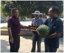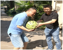 “辛苦了!”杨处长、蔡书记每到一处都与职工亲切交谈并亲自把西瓜、凉茶等慰问品送到他们手中,向奋斗在高温下的绿化工人、设备检修员、动物饲养员们表达了深深的敬意,感谢他们为动物园付出的辛勤劳动;在关心职工身体健康的同时,还现场询问了游乐设备、笼舍安全、绿化用水等日常工作,督促指导各部门抗高温、保运转,推动我处各项工作稳步前进。一罐凉茶并不贵重,但它表达了单位领导体恤职工的浓浓情意,给炎炎夏日带来一丝清凉。