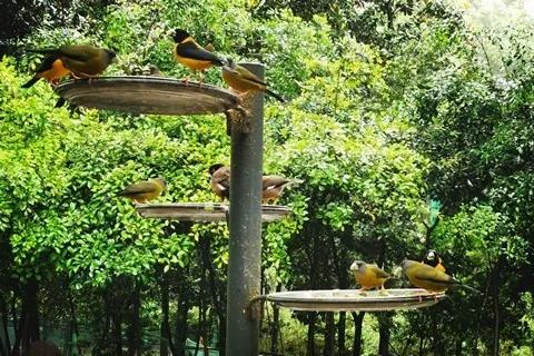 人性化的“投食柱”让八哥、噪鹛分区采食