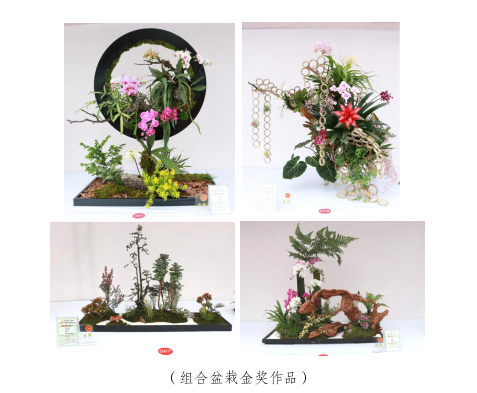 参展作品共计92件,其中插花艺术作品54件,组合盆栽作品38件,含插花艺术大师作品14件(友情展示不参评)。评选出插花艺术作品金奖4个、银奖6个、铜奖14个,组合盆栽作品金奖4个、银奖5个、铜奖11个。市城市管理局发展规划处、标准与规划设计管理处、城市园林绿化管理处,成都插花艺术协会和九龙坡区城市管理局、市动物园管理处、市花卉盆景协会领导向获奖者颁发了荣誉证书。