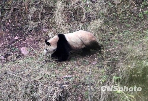 近日,四川峨边县黑竹沟自然保护区再次出现野生活体大熊猫,这已是今年以来第二次在野外发现活体野生大熊猫。经现场初步辨认,大熊猫背部厚实宽阔,动作敏捷有力,背部上洁白的毛发,在林间极为醒目,身长接近1米,年龄大概在2—3岁。从它的身体形态和动作上看,是一只健壮的大熊猫。(立克幸福 摄)