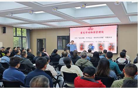 为进一步提高全处干部职工的消防安全意识,增强自防自救能力,避免发生火灾事故。结合全国第34个消防日,11月5日重庆动物园邀请重庆市利民消防宣传培训中心的冯广庆教官来园,以“全民消防、生命至上”安全用火用电为主题开展消防安全培训。我园全体行政办公人员,各部门一线在岗职工及各驻园单位代表共计105人参加了培训。